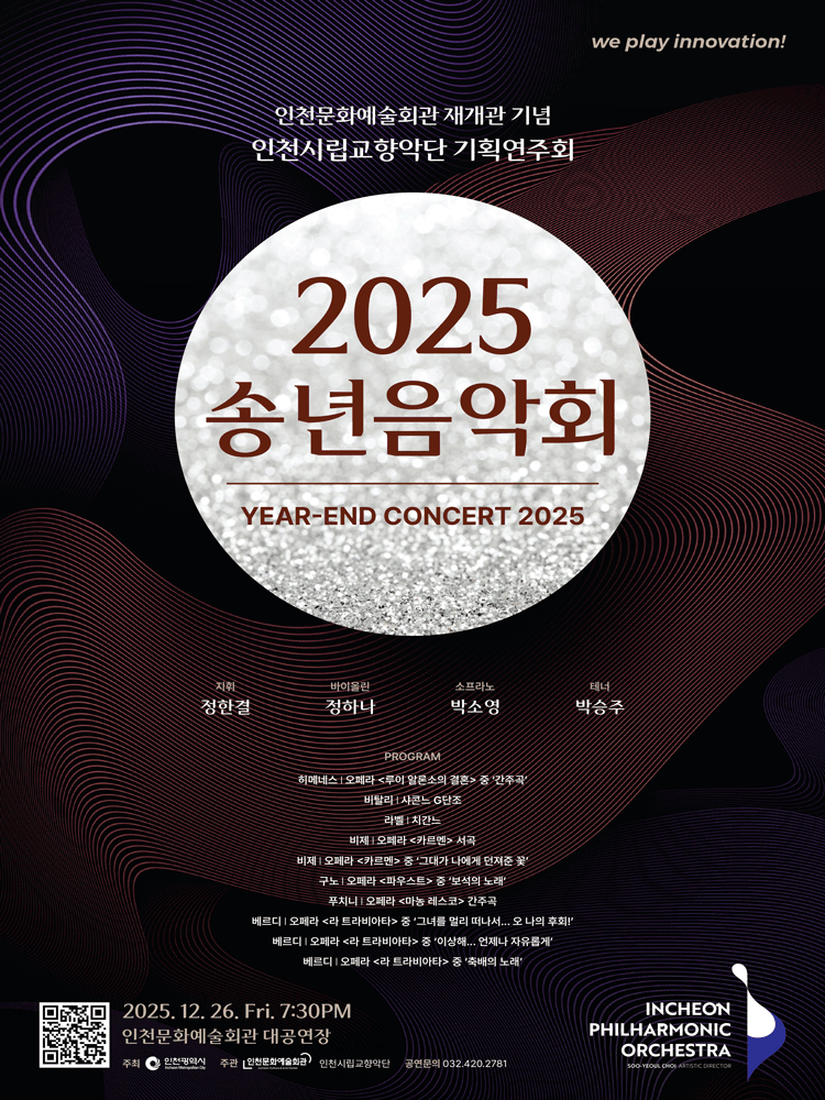 인천시립교향악단 기획연주회 송년음악회 인천 25.12.26(금) ~ 12.26(금) |