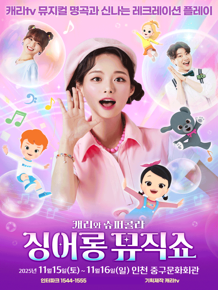 캐리와 슈퍼콜라의 싱어롱 뮤직쇼 인천 중구 25.11.15(토) ~ 11.16(일) |