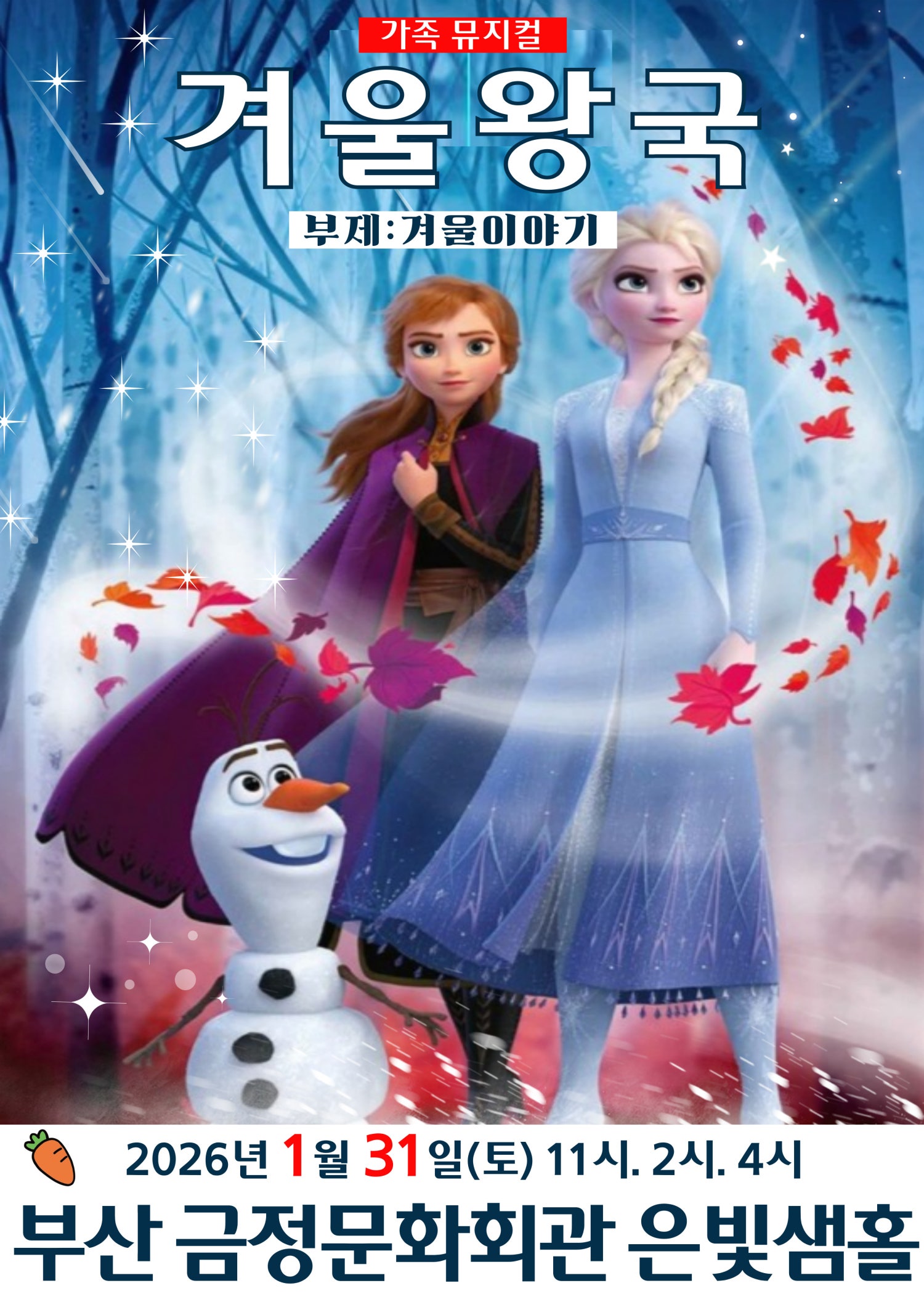 겨울왕국 겨울이야기 부산 금정 26.01.31(토) ~ 01.31(토) |