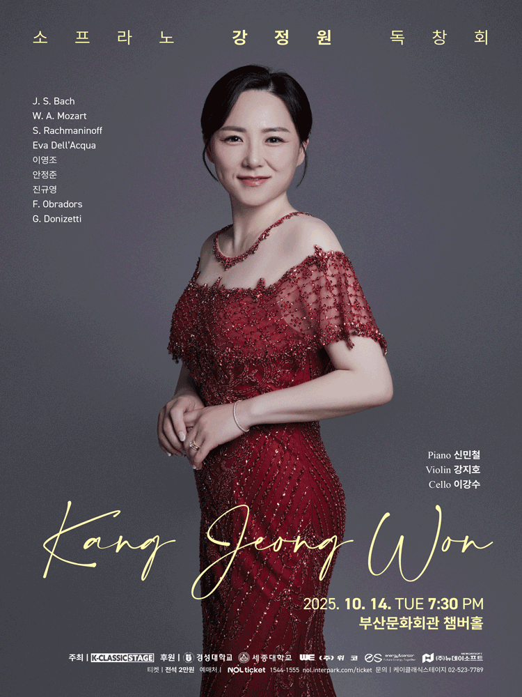 소프라노 강정원 독창회 부산 25.10.14(화) ~ 10.14(화) |