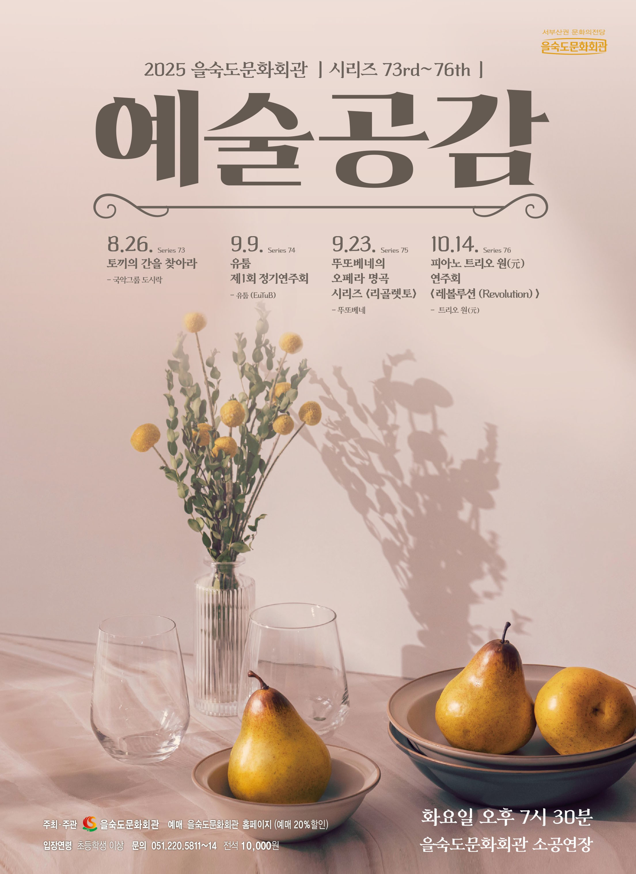 제76회 을숙도 예술공감 피아노 트리오 원 (元) 연주회 레볼루션 (Revolution) 25.10.14(화) ~ 10.14(화) |