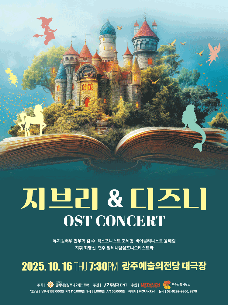 지브리 디즈니 OST 콘서트 광주 25.10.16(목) ~ 10.16(목) |