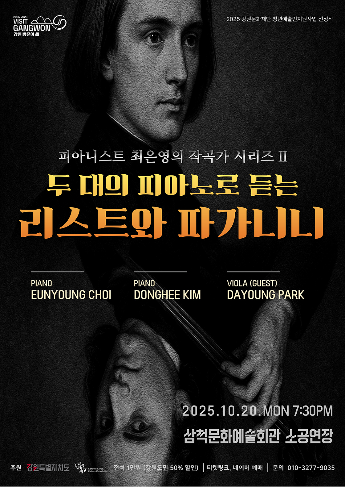피아니스트 최은영의 작곡가 시리즈 Ⅱ. 두대의 피아노로 듣는 리스트와 파가니니 삼척 25.10.20(월) ~ 10.20(월) |
