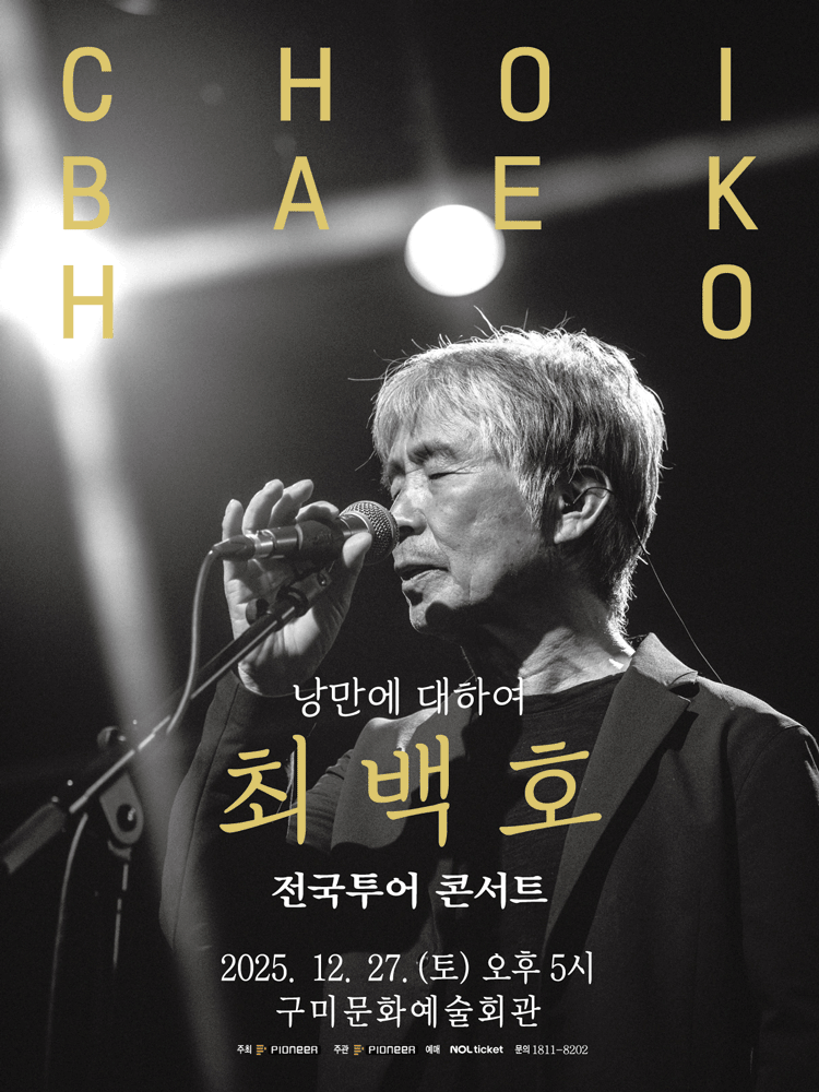 최백호 전국투어 콘서트 낭만에 대하여 구미 25.12.27(토) ~ 12.27(토) |
