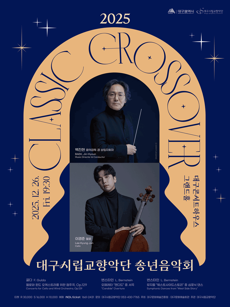 대구시립교향악단 송년음악회 클래식 크로스오버 대구 25.12.26(금) ~ 12.26(금) |