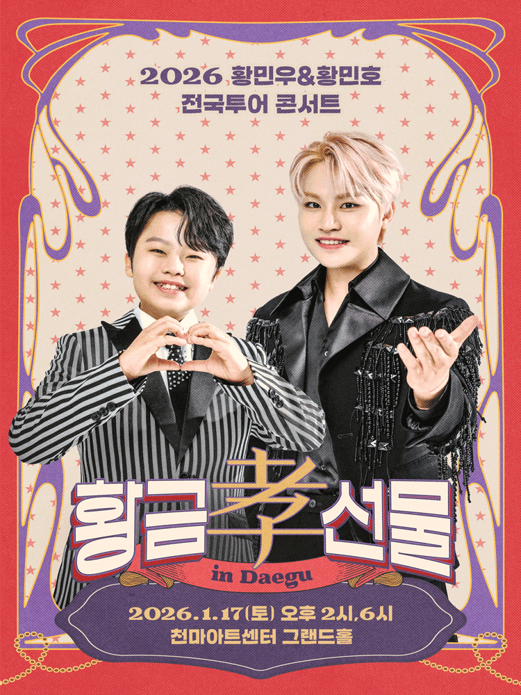 황민우 황민호 전국투어 콘서트 황금효선물 대구 26.01.17(토) ~ 01.17(토) |