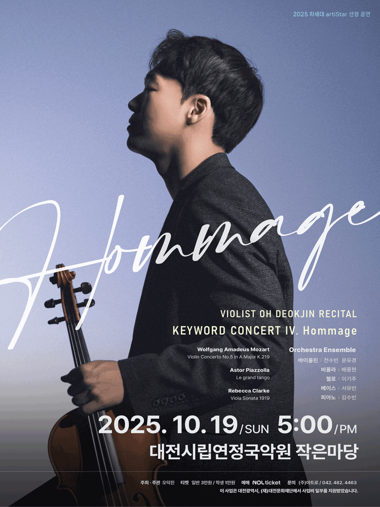 비올리스트 오덕진 리사이틀 KEYWORD CONCERT IV. Hommage 대전 25.10.19(일) ~ 10.19(일) |