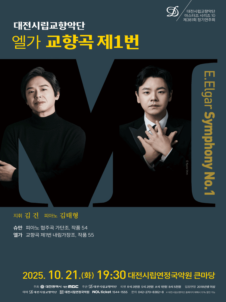 대전시립교향악단 마스터즈 시리즈 10 엘가 교향곡 제1번 25.10.21(화) ~ 10.21(화) |