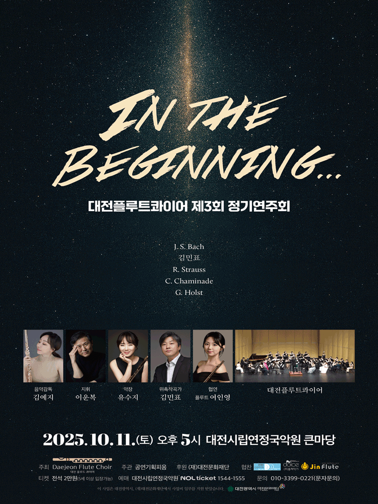 제3회 대전플루트콰이어 정기연주회 IN THE BEGINNING 대전 25.10.11(토) ~ 10.11(토) |