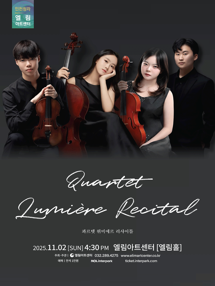 콰르텟 뤼미에르 리사이틀 인천 25.11.02(일) ~ 11.02(일) |