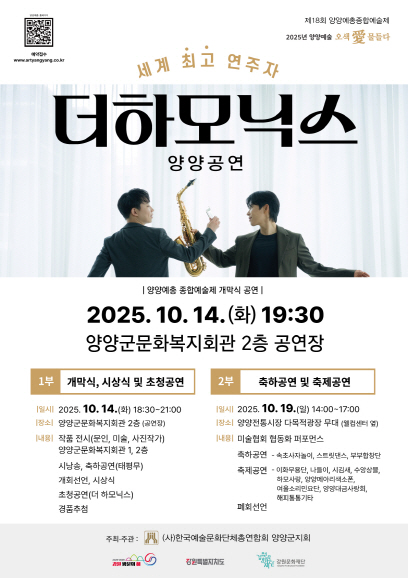 제18회 양양예총 종합예술제 초청공연 25.10.14(화) ~ 10.14(화) |