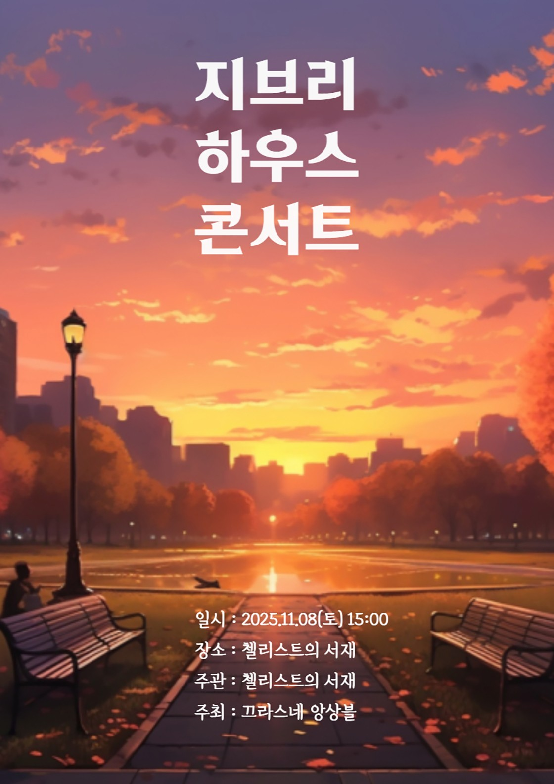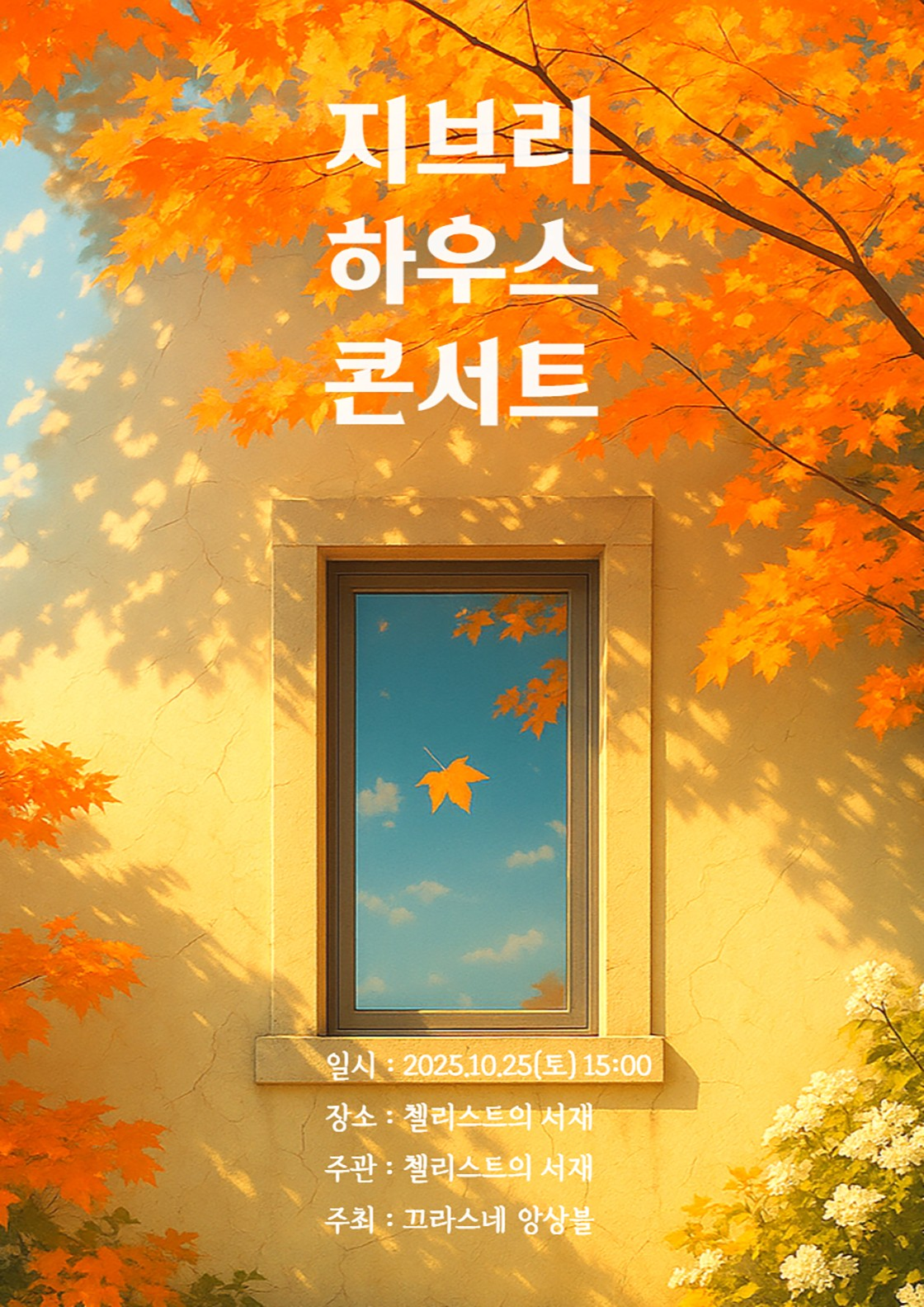 지브리 하우스 콘서트 가을 낙옆이 떨어지는 그 날에 부산 25.11.08(토) ~ 11.08(토) |
