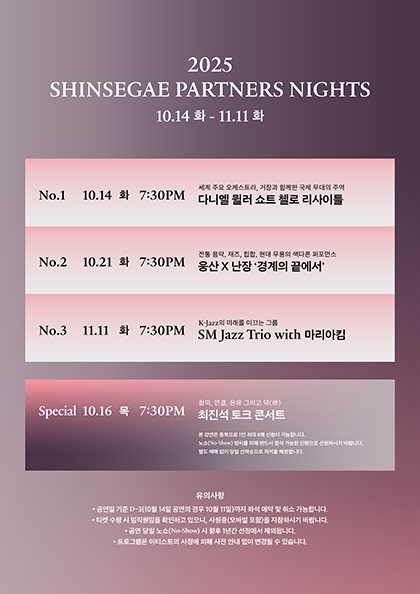 신세계 파트너스 나이츠 No.1 다니엘 뮐러 쇼트 첼로 리사이틀 25.10.14(화) ~ 10.14(화) |